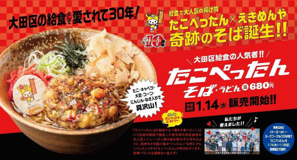 子どもたちの給食から駅そばへ 大田区発祥人気給食メニュー「たこぺったん」が「た...